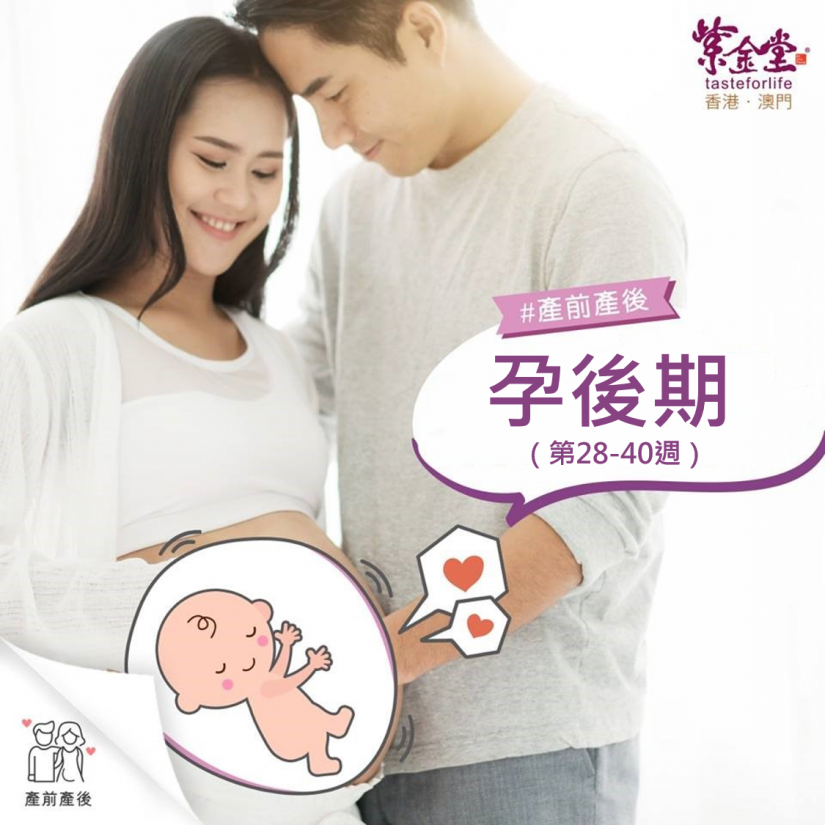 懷孕七個月後為「孕後期」,此階段凖媽媽應該控制體重增加在每星期0.5kg,增重主要來自於胎兒、胎盤及羊水的增重。準媽媽應留意自己的飲食、營養吸收是否充足, BB才可以茁壯地成長。視乎自己身體狀況,每日建議做少量孕婦運動可有助分娩。